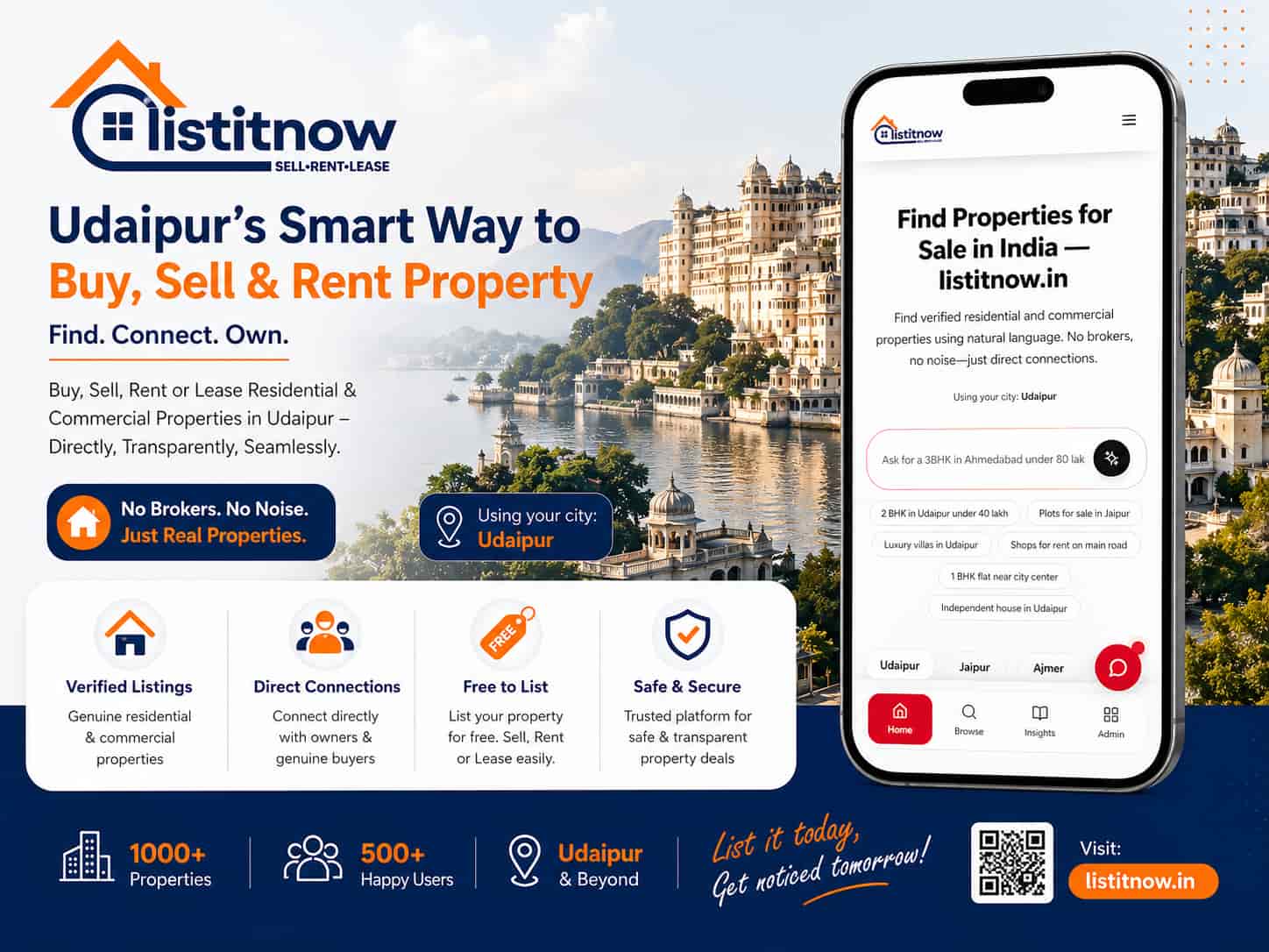 Unlike big national portals, ListItNow focuses on local property needs in Udaipur. This means: